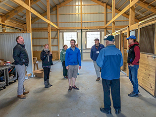 Ranch foreman Steve Murray (center) gave NAB members a tour of the new horse care barn at the A/U Ranches