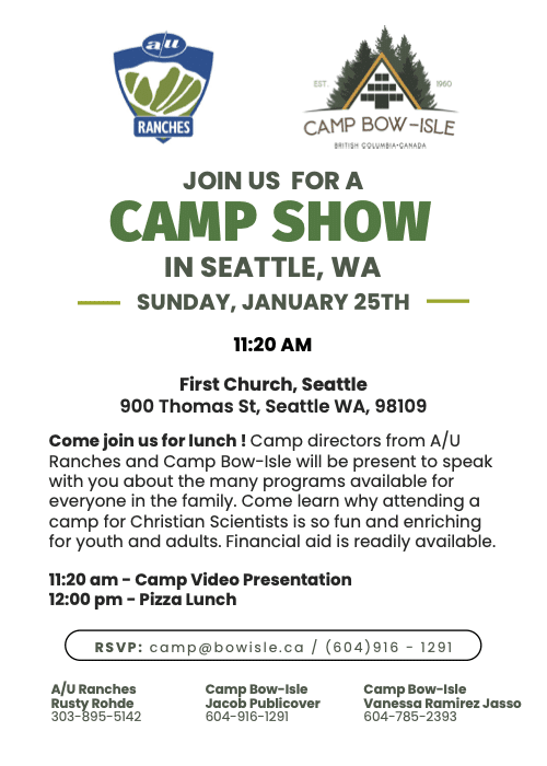 Come connect with camp! We’re headed to Washington for a joint camp show with Camp Bow-Isle. Join camp directors from both camps for lunch and to learn about youth, family, and adult programs available year-round at the A/U Ranches in Buena Vista, Colorado and Camp Bow-Isle on Bowen Island, British Columbia.